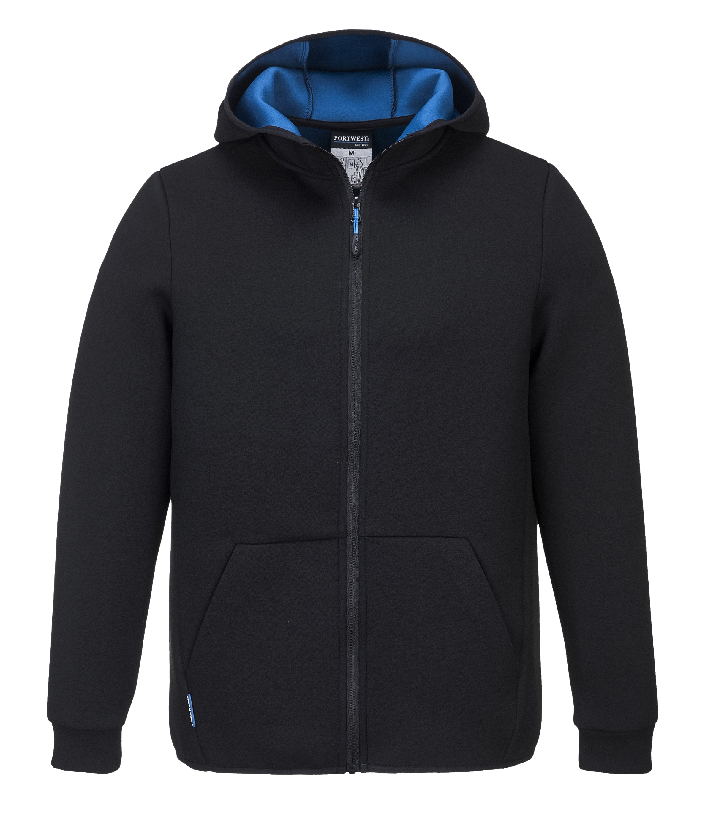Tekninen hupullinen työtakki, joka on valmistettu uudentyyppisestä kaksikerroksisesta premium-kankaasta, joka tuntuu miellyttävältä niin sisä- sekä ulkopuoleltakin. Tämä takki on teknisesti toimiva ja siis myös erittäin mukava käyttää. Kengurutaskut edessä auttavat pitämään kädet lämpiminä. Vaihdettavat vetoketjun vetimet punaisena, sinisenä sekä valkoisena toimitetaan mukana ja helpottavat tuotteen räätälöintiä yrityksen värimaailman mukaiseksi.