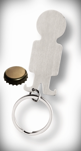 Key ring in shape of a little "helper" incl. shopping trolley coin and bottle opener. With key ring, made of stainless steel, in Pollybag with info card.